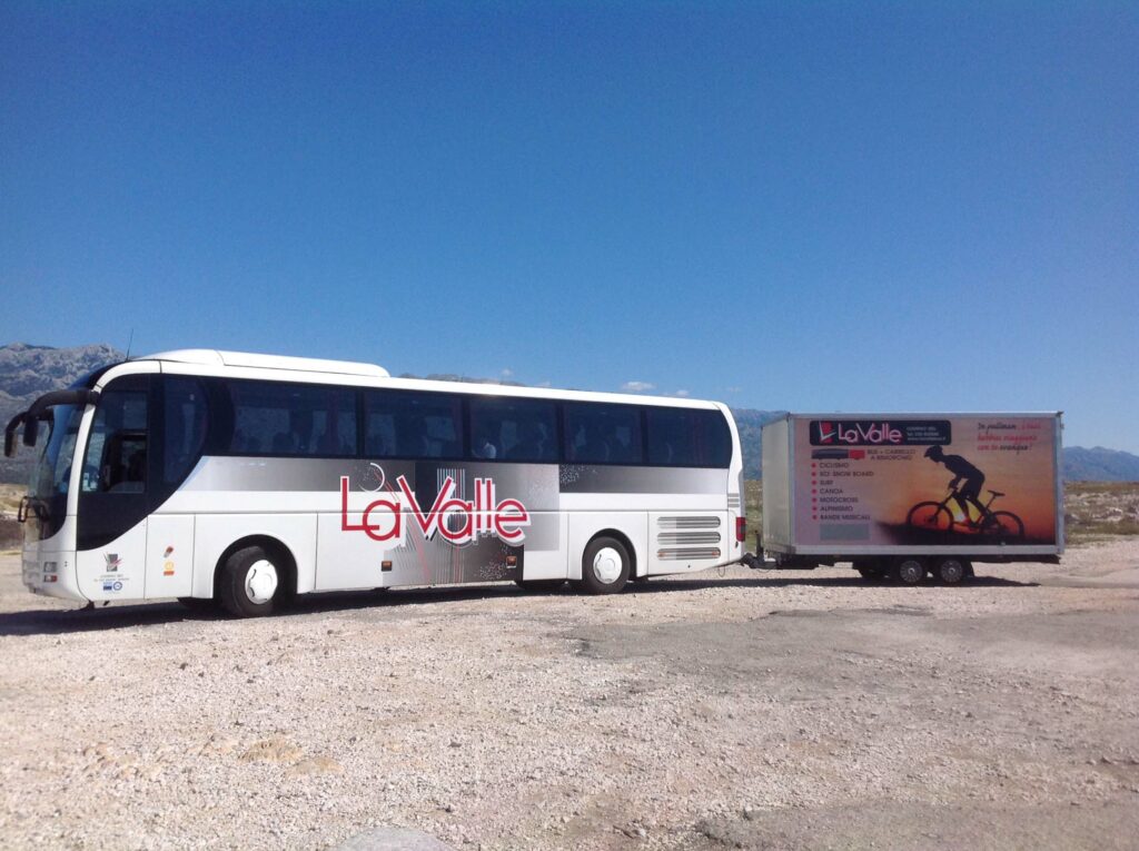 Offriamo inoltre un servizio aggiuntivo grazie all’utilizzo di un carrello trainato, che consente il trasporto in sicurezza di biciclette, strumenti musicali e attrezzature sportive, non collocabili nei vani bagagli degli autobus per motivi di ingombro.